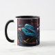 Voiture de luxe noir laquée dans la nuit urbaine. mugg