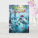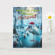 Ett roligt julkort - En Ibis-fågel med en julhatt står i en frusen tropisk träff av Cypress Träd. Insidan kan anpassas för en personlig hälsning.