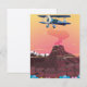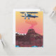 Ett flygplan-flygplan med vintage blått stöd som flyger lågt över en vulkan.