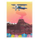 Ett flygplan-flygplan med vintage blått stöd som flyger lågt över en vulkan.