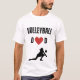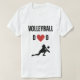 A female volleyball player digs for the ball underneath the words "VOLLEYBALL DAD." The A in "DAD" is formed by a heart.