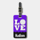 En söt och anpassade volleyball KÄRLEK-påse-märkre för volleyball-spelare att märka sina väskor och sin utrustning. Om du vill anpassa den skriver du spelarens namn i textrutan anpassningsbar, klickar sedan på knappen [Anpassa] och användor färg-väljaren verktyg för att markera vilken färg som helst (som för närvarande är inställd på lila). Glöm inte att byta färg på båda sidor, fram och bak.