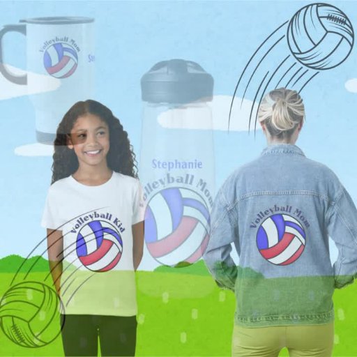 Texten från Volleyball Mamma böjdes runt en röd, vit och blå volleyboll. Mamma namn är i matchande royal blått i mitten. Bra gåva till Mors dag.