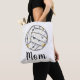 Personlig volleyball mamma till väskan. På vägens framsida står en volleyball-fullt av svart och guld-hjärtan, med ord Mamma i svart text. Anpassa teckensnittet så att det matchar ditt team färger eller ditt mammor favoritprogram färg. Baksidan av väskan är en volleyball mönster.