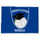 Fira student med det här idrottstemat volleyball studenten annonsering, inbjudan och party-dekoration i blått! Perfekt för en högskola, högskola eller åttonde klass student som gillar fotboll och sport!