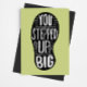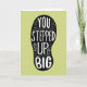 Tack någon för att du hjälper till med den här unika illustrativa kortdesignen med meddelandet "DU STEPPED UP BIG". Text visas i vit brev inuti skokutform med ljusstrålar och pilaccenter på mörk guld, digitalt texturerad bakgrund. Inuti finns detta meddelande, men det kan anpassas med ett valfritt meddelande: Vi behövde någon som var villig att "STEP UP" och säga "JA, jag kommer att göra det frivilligt." Den personen var du. På alla organisationens vägnar, TACK.