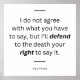 Det ikoniska Voltair-citatet om friheten i tal. Det är inte tal frihet om det inte låter andra säga att sak vi inte håller med om! Jag håller inte med om det du säger, men jag kommer att försvara din höger till döds för att säga det. - Voltaire Quote