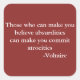 "De som kan få dig att tro absurditeter kan få dig att begå grymheter" varnade Voltaire på 1800-talet. Denna biet av oroande vishet har alltid varit och kommer alltid att vara sann.