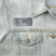Modern och enkel frivillig namn bricka-ID med din händelse eller organisationens logotyp mot en borstad silver-faux-bakgrund.