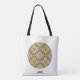 Kaleidoskop tog tote bags för din dagliga använda. Reflektion. Harmoni och balans i gult med blått.