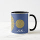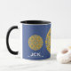 Njut av morgonkaffet i en kalejdoskop, den tematiska presenten mugg för dig själv och dina nära. Reflektion. Harmoni och balans i gult med blått.