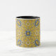 Njut av morgonkaffet i en kalejdoskop, den tematiska presenten mugg för dig själv och dina nära. Reflektion. Harmoni och balans i gult med blått.