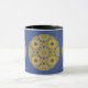 Njut av morgonkaffet i en kalejdoskop, den tematiska presenten mugg för dig själv och dina nära. Reflektion. Harmoni och balans i gult med blått.
