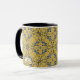 Njut av morgonkaffet i en kalejdoskop, den tematiska presenten mugg för dig själv och dina nära. Reflektion. Harmoni och balans i gult med blått.