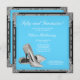 Elegant tealblått med silver-vita glitter-skor med hög klack, kvinnans födelsedagsfest inbjudan. Den vackra tealblåa och svarta födelsedagsfest inbjudan är lätt att anpassa för evenemanget genom att helt enkelt välja knappen "Anpassa den!" för att börja lägga till information om evenemanget, teckensnittet stil, teckensnittet storlek & färg och ordalydelsen. Observera att alla de klistermärken, kort och inbjudningssymboler som du hittar på Zazzle är tryckta bilder utan egentliga juveler, bogar, upphöjda, präglade eller tillagda delar eller delar.