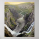 Poster ut Voringsfossen vattenfall i Mabodalen canyon under solnedgången. Det är den högsta vattennivån i Norgen.