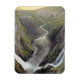 Lodrät fotomagnet av Voringsfossen vattenfall i Mabodalen canyon under solnedgången. Det är den högsta vattennivån i Norgen.
