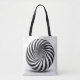 Detta slående shopping bag har en fängslande optisk illusion från spiral som drar öga till en mesmarsande vört. Utformningen skapar en dynamisk känsla av rörelse, skapar det som om spiral ständigt snurrar inåt. Med fet svart och vit kontrast är denna optiska illusionssäck både modern och öga-fångande. Perfekt för dem som har unika, geometriska estetiker är det designat att vrida huvudena samtidigt som det förblir funktionellt och stabilt för den dagliga användan. Perfekt för mode-fram-shoppare som uppskattar en aning konstnärligt flust i sina tillbehör.