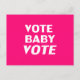 "Vote Baby Vote" shock rosa, magenta, fuchsia, vit Vykort