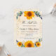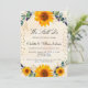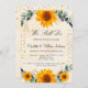 En vit och guldfärgad bakgrund dekorerad med solblommor, eukalyptus grey och guldfärgad löv och guldhjärtan sprinklar. Anpassa och lägg till information om namn och party.