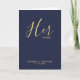 "Hennes Vows"-kort med minimalistisk Bröllop har titeln "Hennes Vows" i guld med det moderna skripttypsnittet stil med bröllop i sans serif font stil på marinblå bakgrund. Obs! Folidinformationen simuleras i teckningen. Ingen faktisk folie kommer att användas vid skapar av denna produkt.