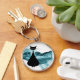VoxKitty vinkar den svart katten på av blått Rund Silverfärgad Nyckelring