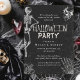 Inbjudan dina gäster i stil med den här Vuxen inbjudan till Vintagen i Halloween fest. Designad med eerie elegance kombinerar det ett klassiskt gotiskt estetiskt med ett fördärvande skallkonstverk - perfekt för att ställa stämningen för ett sofistikerat men fläckigt firande.