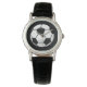 Kvinna klassiskt svart läderbandsur som visas med fotbollar. Välj den här klockan från flera stilar. Anpassa den här klockan eller köp som det är. Lagrar-bild