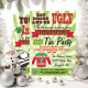 Toppen roligt ful sweater jul party med ett retro. Modern stil, banderoller och en ful svettare mot en solnedgång. Baksidan är en underbar som framsidan med gammal Retro Jultomten-klippbild och party-information. Hand plockade illustration av McBooboo. com