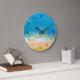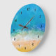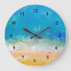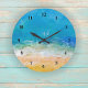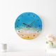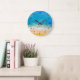 En tropisk vattenfärg på en strand med krasch vinkarare som en unik väggklocka. Dafsam.