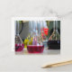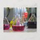 Kort med kolvar som innehåller färgstarka vätskor. Kemi. Kan användas för brevväxling.