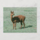 Rust-brunalalaca som står i mitten i grönten fält. Solljus kastar en skugga av huvudet mot kroppen och en skugga av djuret mot marken. Anpassa texten "Önskar att du var här ..."