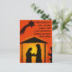 En enkel men färgstark julsilhuett med julhälsningar på sex språk - engelska, spanska, italienska, nederländska, Fransk, tyska.