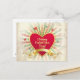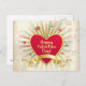 Alla hjärtans dag vykort med vintage rött hjärta, gyllene rand och strålar.