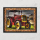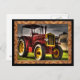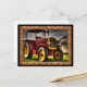 Denna vintage traktor har en gammal brunsttäcke i tak på den. Med gamla gult metall-fälgar.Kroppen är röd och frontgallret är gult.Du kan se grått-moln och gräs.Det här vykortet har en träbrun ram och en svart bakgrund. Bakgrunden till färg kan ändras till valfritt färg som du vill att det ska vara med märkrn anpassningsbar.Med det här vykortet kan du lägga till text samtidigt..