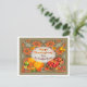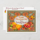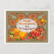 Ett fantastiskt kort för thanksgiving med abstraktens bakgrund skapat från en bild av ljusa bär av orange, med ytterligare fall av blad, färgfulla pumpor och ett stort basket av rödäpplen, andra grönsaker och frukt. "Happy thanksgiving från vår familj till er!"