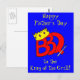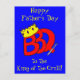 Färgrik tecknadillustration av ord BBQ som ha på sig en krona. Vykortet läser: Lycklig fars dag till kungen av grilla! Perfekt för någon pappa för BBQ-grillinlovin! Totalt anpassadet för att dig ska personifiera som dig behar!