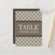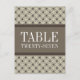 Trendig och chic Finare Lattice Bordsnummer Postcard med en snyggt cirkel och diamant som studerade mönster över en vibrant tidal skumbeige bakgrund med en bred, tvåtonad brun gräns. Bord-kortet i elegant är perfekt för ett modernt bröllop. Enkel att anpassa, lägg helt enkelt till rätt bordsnummer i den text fält tillhandahåller. Klicka på Anpassa om du vill söka efter fler anpassningsalternativ.