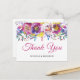 Vykort för Bright Fuchsia Guld Blommigt Tack