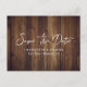Enkelt rosa bröllop spara datum-vykort med en lada-bakgrund.