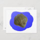 Ett foto av en ung afrikansk Bullgrog sitta i ett digitalt skapat blått sjö på ett vitt vykort.