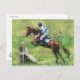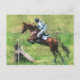 En oljemålning-effektdesign som är gjord av ett foto av en häst och en riddare som konkurrerar i ett evenemang mellan kor och land.