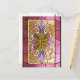 Det här vykortet har ett foto av en kyrkas nedfläckad glas, blommans designfönster på det.