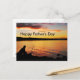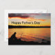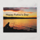 Fiskare som är silhuetterad vid Fars dag-vykort för solnedgång