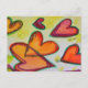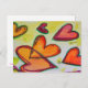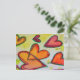 Persikor, rosa och orange hjärta flyger över målningen som löst höst löv som fångats i en säck. Varje hjärta spåras med hjälp av en grönt. Blek gult färg är som konfetti mellan hjärtan. Vattenfärgsmålningen har ett ljus lagrar av guld och rosa överst. Anpassa vykortet med din personliga text och bilder!