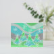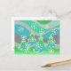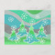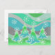 Ett modernt, stiliserat vinterlandskap med frostigt gräs träd och mousserande snöflingor. Vykort med grönt, blått, silver grått och vitt anpassade som du kan anpassa med egen text, bilder och egna idéer. Jess Perrys digitalt förbättrade färgpenna teckning.