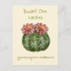 Dwarf chin cactus vattencolor vycard på ett vykort. Kallas även spindelcactus, Latin namn gymnasticalycium baldianum.