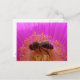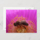 Honungsbin har ett vykort som samlar in pollen från en rosa blomma.