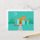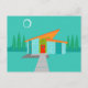 Denna vykort för huset för utrymmeåldertecknaden är riktiga en retro älskare dröm- kom. Den minimalist konstdesignen presenterar ett aquastenhus med stort, påfågelblåttfönster. Hänga från det atom- och att luta, exponerar det orange tak, en gul sputnik lätt fast tillbehör ytterdörren. Den tog paus röda ytterdörren med starburstdörrhandtaget är beautifully offset vid de vertikala gröna wood plankorna av den yttre entrywayen. En grå stenväg klipper över den pristine gräsmatta, som visas turkos i månsken. Bak huset pekar en ro av ett högväxt som är tunn, träd till turkoshimmlen och vitsilhouetten av en fullmåne. Fördriva inget folk är synligt, på en nattnågot liknande detta, det kitschy hus invånare är antagligen hållande ögonen på nyheternafootage för insida av astronauten.