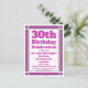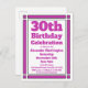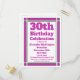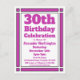 Skicka inbjudningar till ett 30års födelsedag firande med det här vykortet för inbjudan till Geometric Lila 30års födelsedag. Anpassad med dina personuppgifter och party.